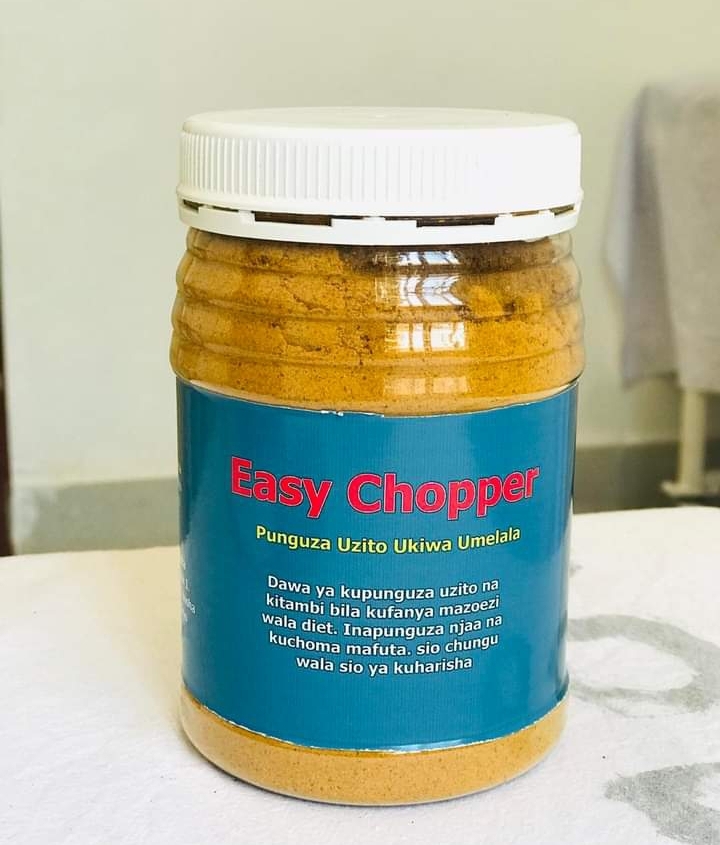 Easy chopper ni dawa ya asili ambayo inaongeza kasi ya mwili kuchoma mafuta, INAPUNGUZA NJAA na hivyo inapunguza uzito na kitambi.